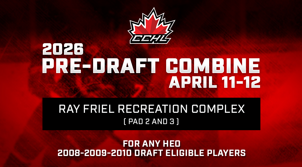 The 2026 CCHL Pre-Draft Showcase will be held at the Ray Friel Recreation Complex on Saturday, April 11th, and Sunday, April 12th, 2026. This showcase is restricted to draft-eligible players from HEO born between January 1, 2008, and December 31, 2010. The 2026 CCHL Pre-Draft Showcase provides a final opportunity for players to showcase their skills to representatives from all 12 CCHL teams. All players will participate in four (4) fast-paced games, with the unique opportunity of having CCHL team representatives present on the bench throughout the weekend. Attempts will be made to keep some teammates together on teams, but this is not guaranteed.